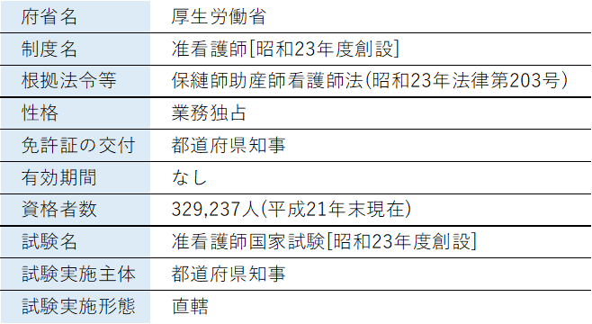 これは平成14年の閣議決定※を踏まえて総務省が実施した「資格制度概況調査」(平成23年10月)に明記されているものです。この定義に照らせば、国の法律である保健師助産師看護師法に基づいて制度が構成されている准看護師は、当然に国家資格に含まれることがわかります。 ※「公益法人に対する行政の関与の在り方の改革実施計画」